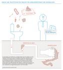 Anders als teilweise von den Herstellern propagiert, sind Feuchttücher nicht leicht löslich und können sich daher mit anderen Abfallstoffen verbinden und so den Kanal und die Pumpen verstopfen (siehe Schaubild).