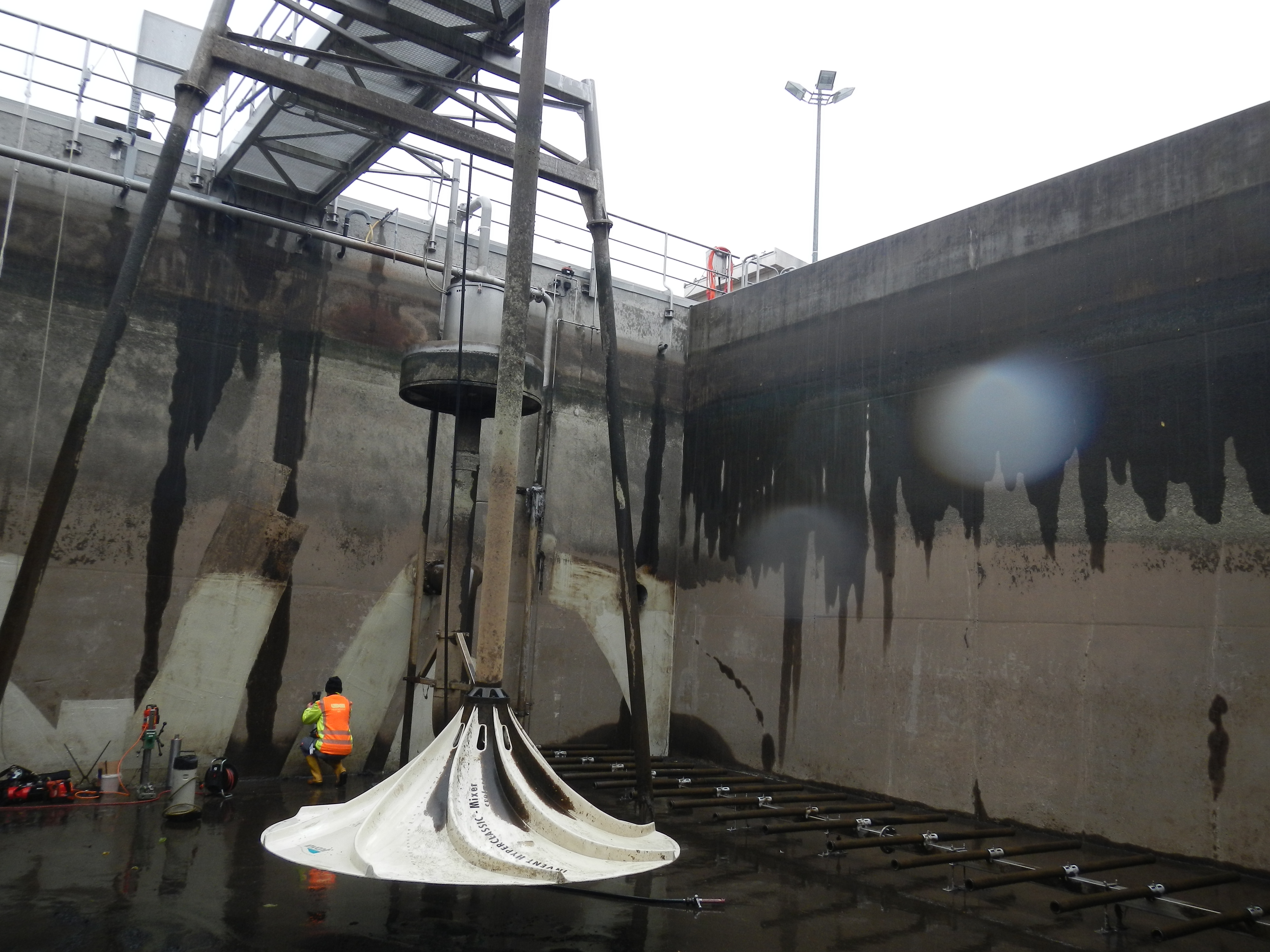 Nachdem die Stahlbetonwände sowie die Bewehrungseisen des 1970 hergestellten Rechteckbeckens durch Korrosion stark beschädigt waren, war hier eine Sanierung dringend erforderlich.