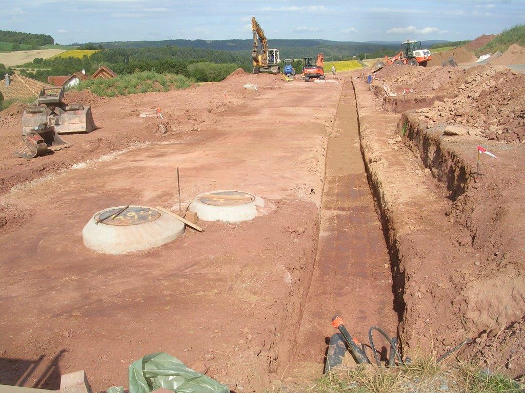 Unter Federführung des Eigenbetriebes Abwasserbeseitigung laufen seit März die Erschließungsarbeiten für das neue Mondfelder Baugebiet „Breitgewann I“, welches direkt an das bestehende Baugebiet "Breitgewann am See" anschließt.