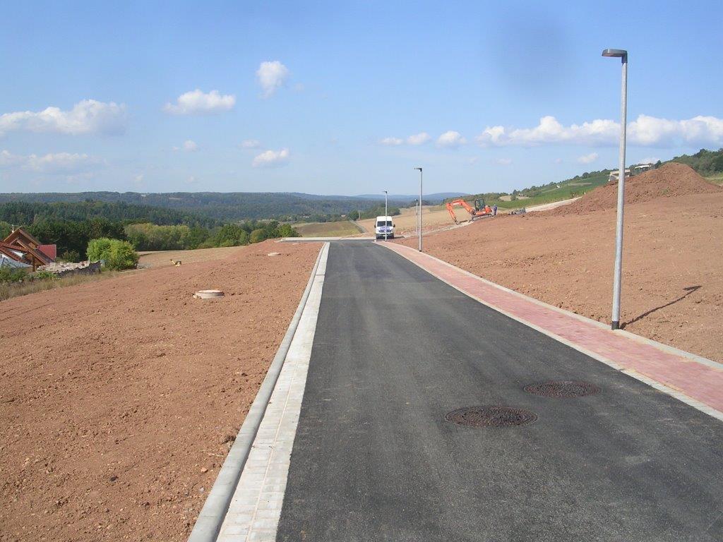 Abschlussfoto der Tiefbauarbeiten mit sonniger Ansicht der erschlossenen Grundstücke.
