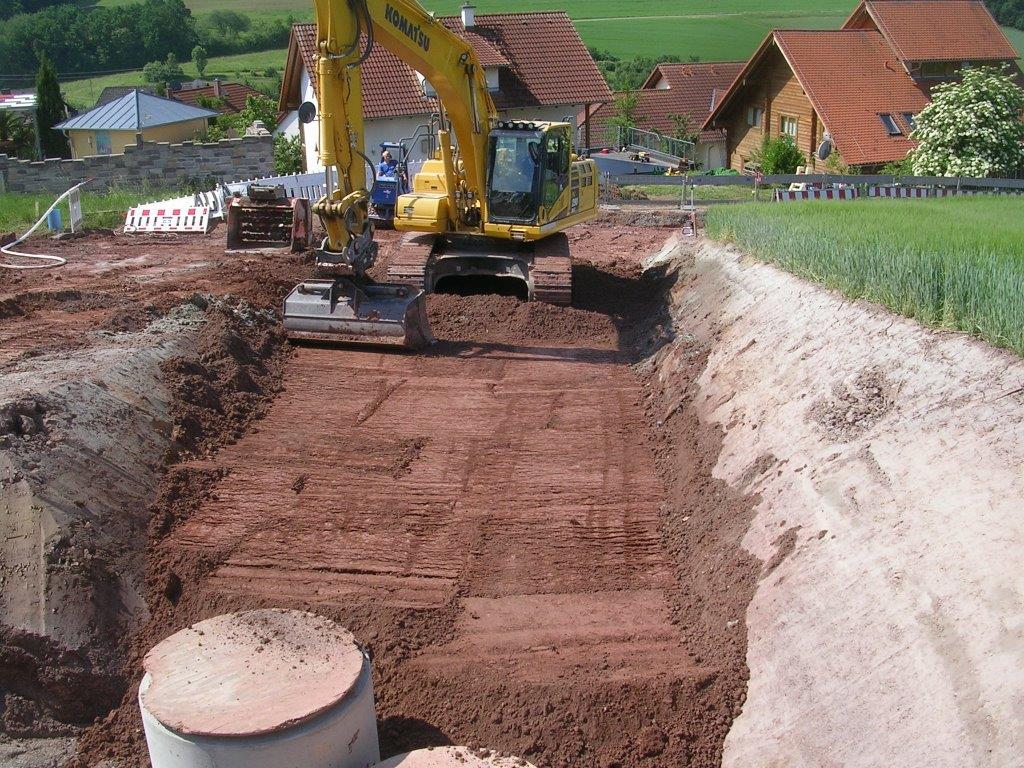 Die Verlegearbeiten für die Versorgungsleitungen stehen nach der Herstellung des Kabelgrabens kurz bevor.
