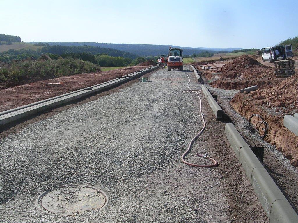 Inzwischen sind die Kanalarbeiten abgeschlossen (entwässert wird im Trennsystem). Nun folgt die Herstellung der Versorgungsträger wie Wasserleitung und Strom, bevor es an den Straßenbau geht.